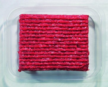 For the production of sale-ready and tray suitable portioned minced meat products on parch...